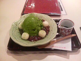 焼きだんごぜんざいか、抹茶白玉アイスかで迷いましたが、人混みをかきわけて歩いて、ちょいと汗をかいたので、アイスにしました。